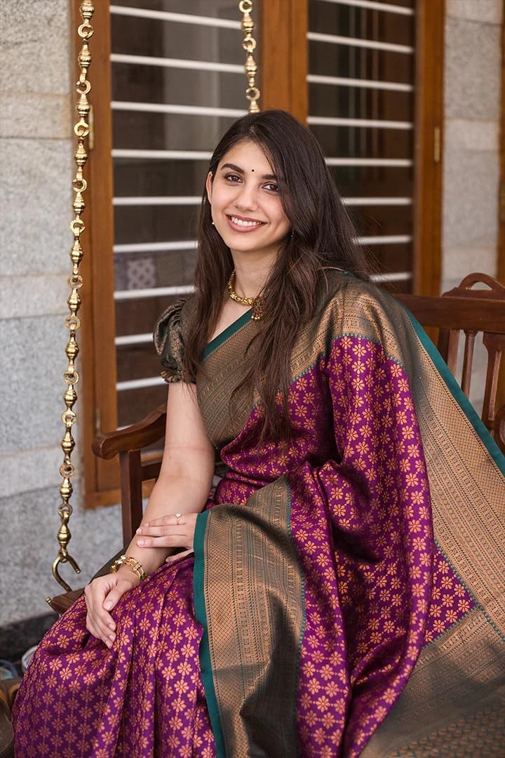 Gorgeous beautiful color saree is well crafted with high quality Kanjivaram Silk Fabric soft finished, heavy Zari border with Rich pallu, comfortable to wear; artistically woven by our skilled artisans; now flaunt your sophisticated appearance on any special function!