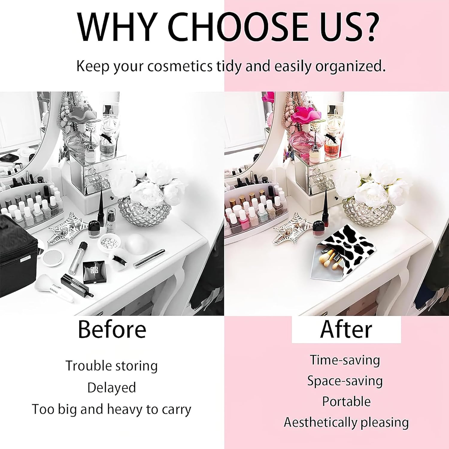 Magic Pouch Cosmetic Bag: The magic makeup wrap transforms into a magic cosmetics pouch, perfect for storing and organizing cosmetics or electronics. The kapta magic cosmetics pouch offers convenience with its self-adhesive design, reducing storage hassle.