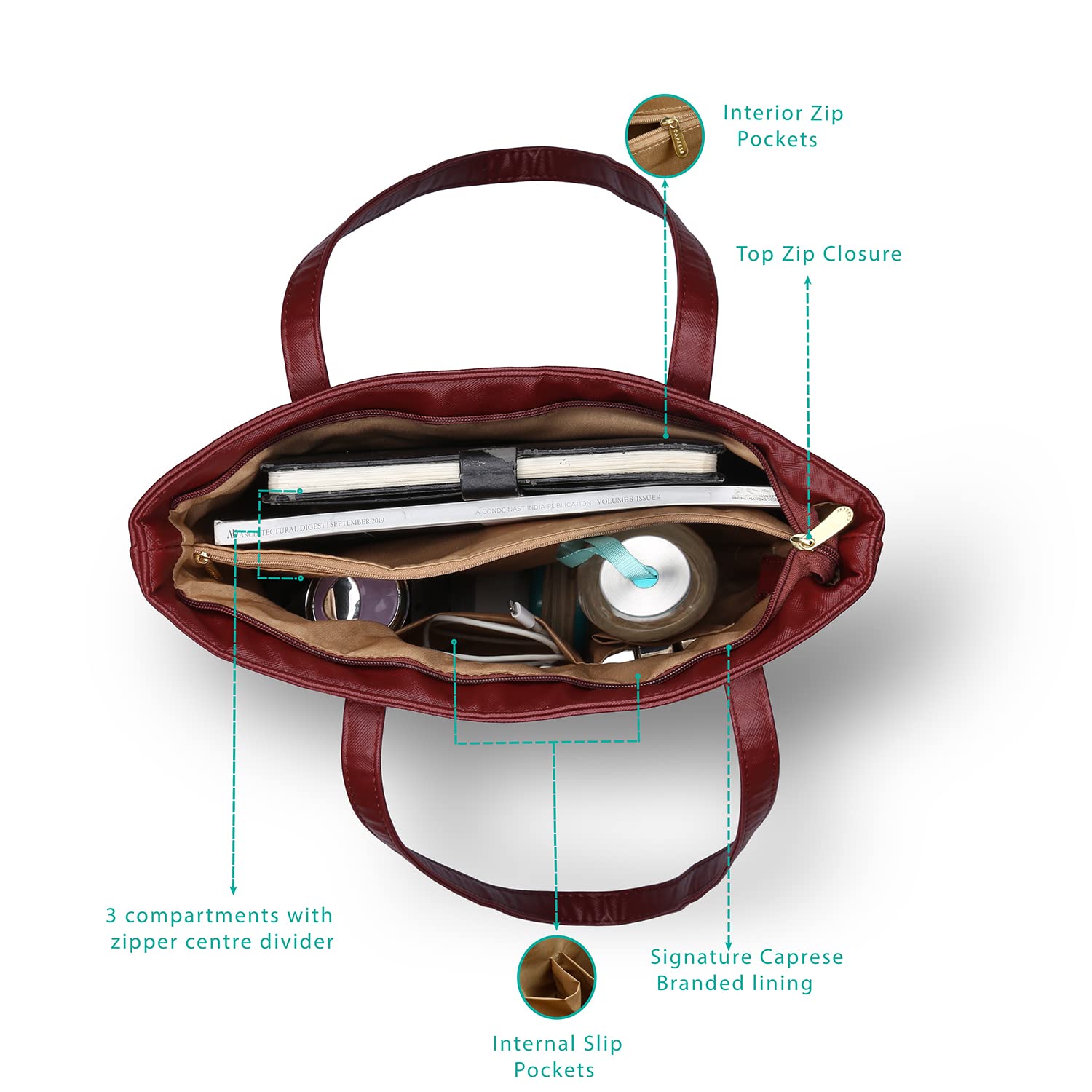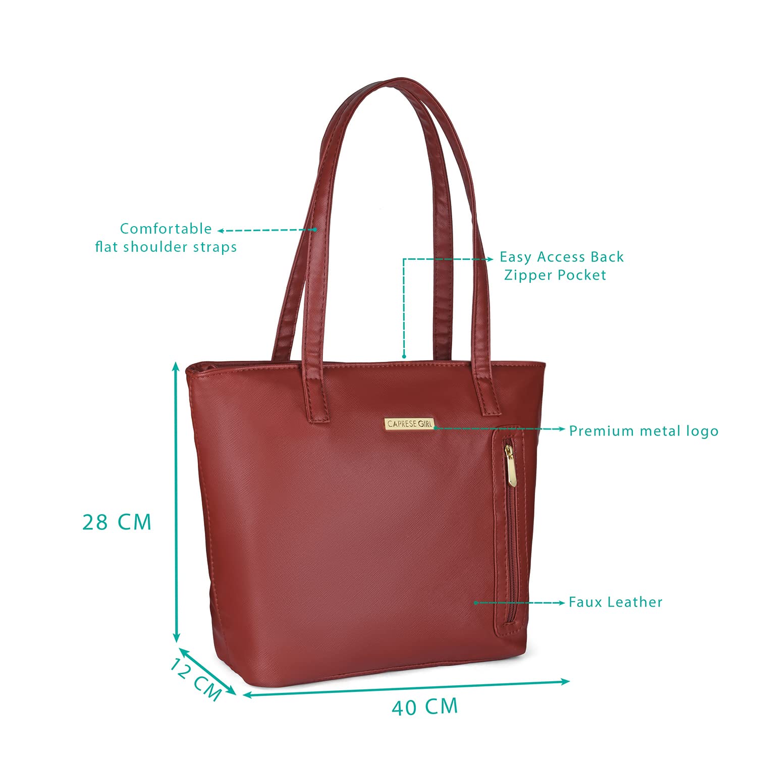 Our bag is made of Faux leather with spacious interior and organized pocket inside to carry essentials.Do not rinse or wash. Do not overfill your product when using, products tend to lose shape. Clean the interiors of your product once a month to remove dust particles. Remove surface dust periodically with soft cloth. Remove stains with soft cloth dabbed with mild soapy water. Do not use detergents. Keep the product in a cool dry place, away from heat. Stuff the product with paper when not in use.