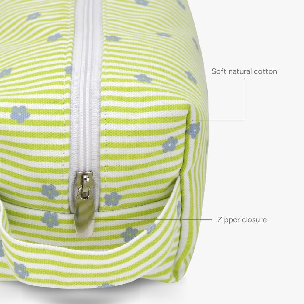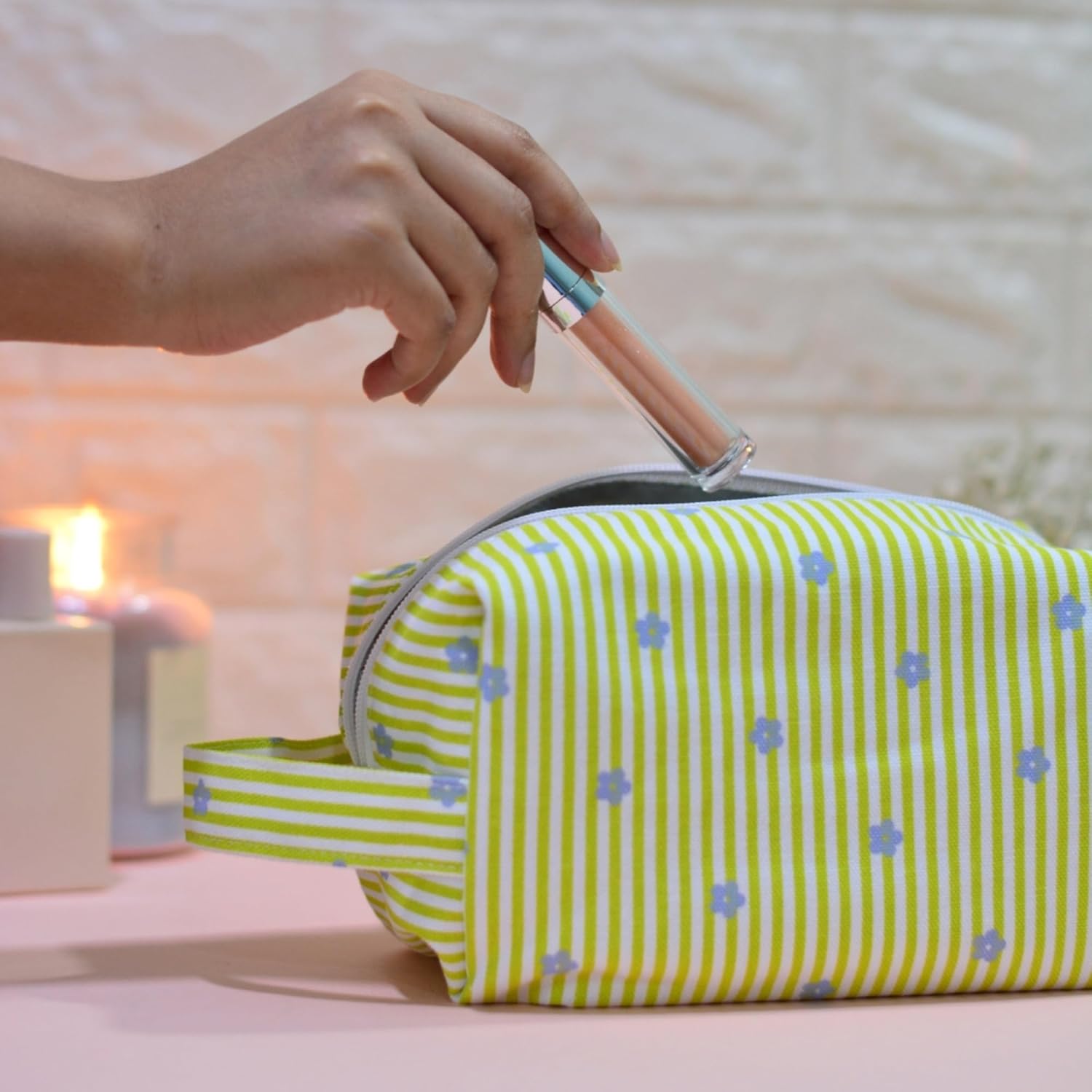 Eco-friendly Travel Kit: Measuring 8 inches (width) x 5 inches (height) x 4.1 inches (depth) in size, these makeup pouch, travel pouch, toiletry bag for women are made with soft canvas cotton. These cosmetic pouches for womenm makeup kit for women have been made with love by local artisans and they are perfect travel essentials & travel accessories. Complete with a water-resistant inner lining, each pouch for travelling helps recycle 2 plastic bottles.