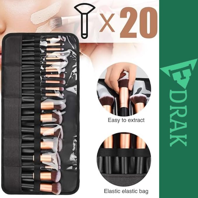 *Large Capacity– The makeup brush bag is lightweight, compact and large capacity.Holds more than 30 all kinds of makeup brushes set,it has 18 elastic band slots for fixing effect. Reduce mess and save space.