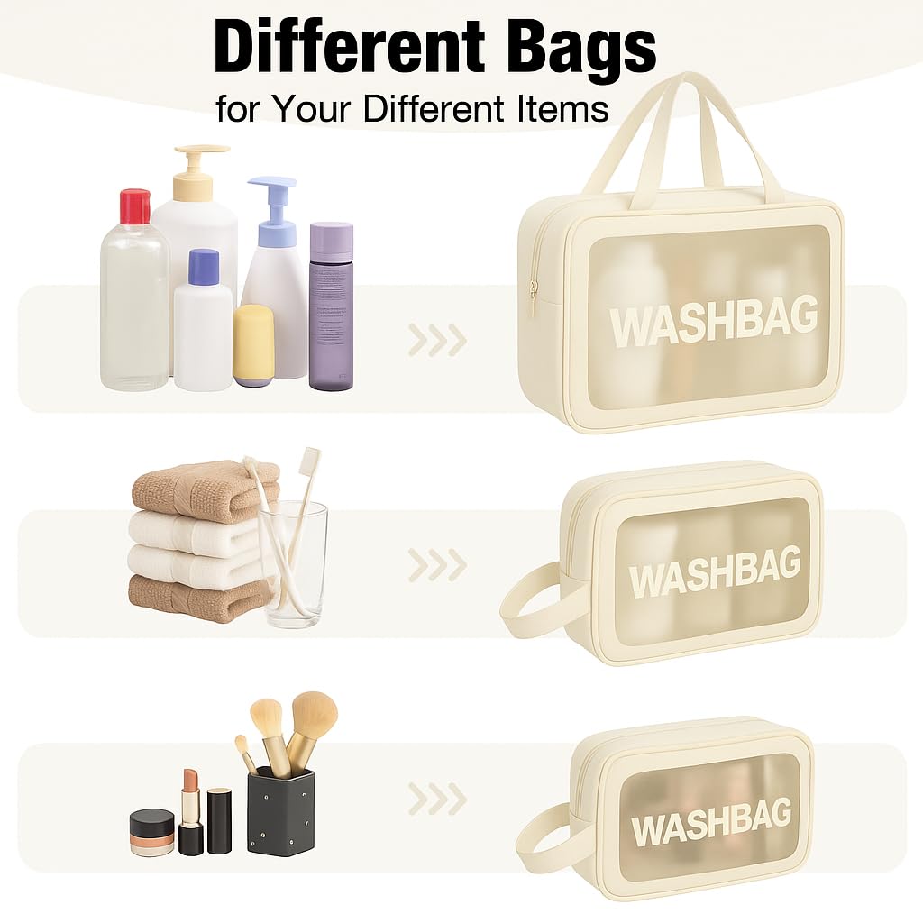 Elevate your travel organisation with this stylish set of three clear mint green washbags. Perfect for keeping your toiletries and cosmetics neatly arranged, each bag features a convenient handle for easy carrying and a transparent panel that lets you quickly identify contents. The set includes three different sizes to accommodate various needs, from small essentials to larger bottles. The durable construction and zip closures ensure your items stay secure during transit. These washbags are ideal for weekend getaways, gym visits, or extended holidays. The practical design makes them suitable for the whole family, while the fresh mint green colour adds a contemporary touch to your travel accessories. The clear panel helps you breeze through security checks at airports, and the waterproof material protects your belongings from spills. Whether you’re organising your bathroom essentials or packing for a trip, this versatile set offers both functionality and style.