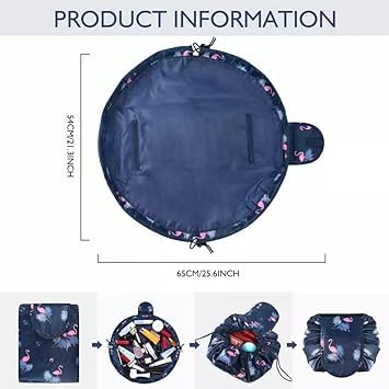 LARGE CAPACITY – The bag is 53 cm x 53 cm which provides a lot of storage space for cosmetics, toiletries, makeup items etc.; INNOVATIVE, PORTABLE & TRAVEL FRIENDLY – The bag is a rage in social media. It is new, innovative and very useful. It is also very easy to carry when one is travelling in a bigger purse or suitcase.