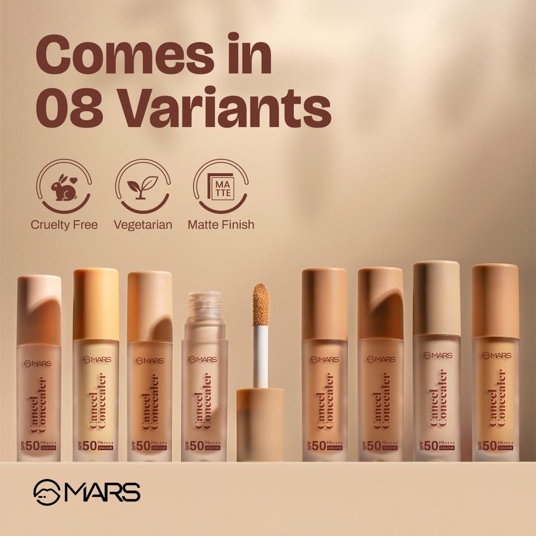 MEDIUM TO FULL COVERAGE WITH NATURAL LOOK: MARS Cancel Concealer is excellent at covering dark circles, blemishes, and other imperfections. It blends smoothly with your skin, giving you a flawless look that doesn’t appear heavy or artificial. You get a natural, radiant finish that looks like your real skin, just better.