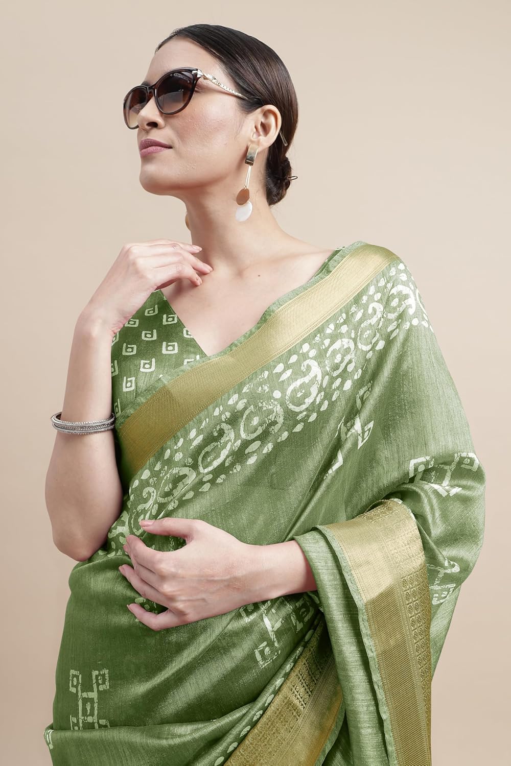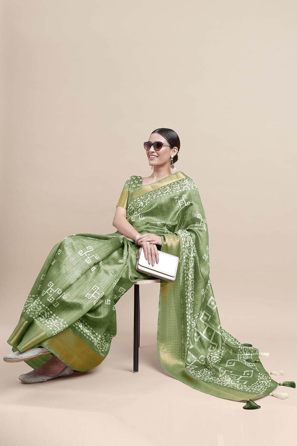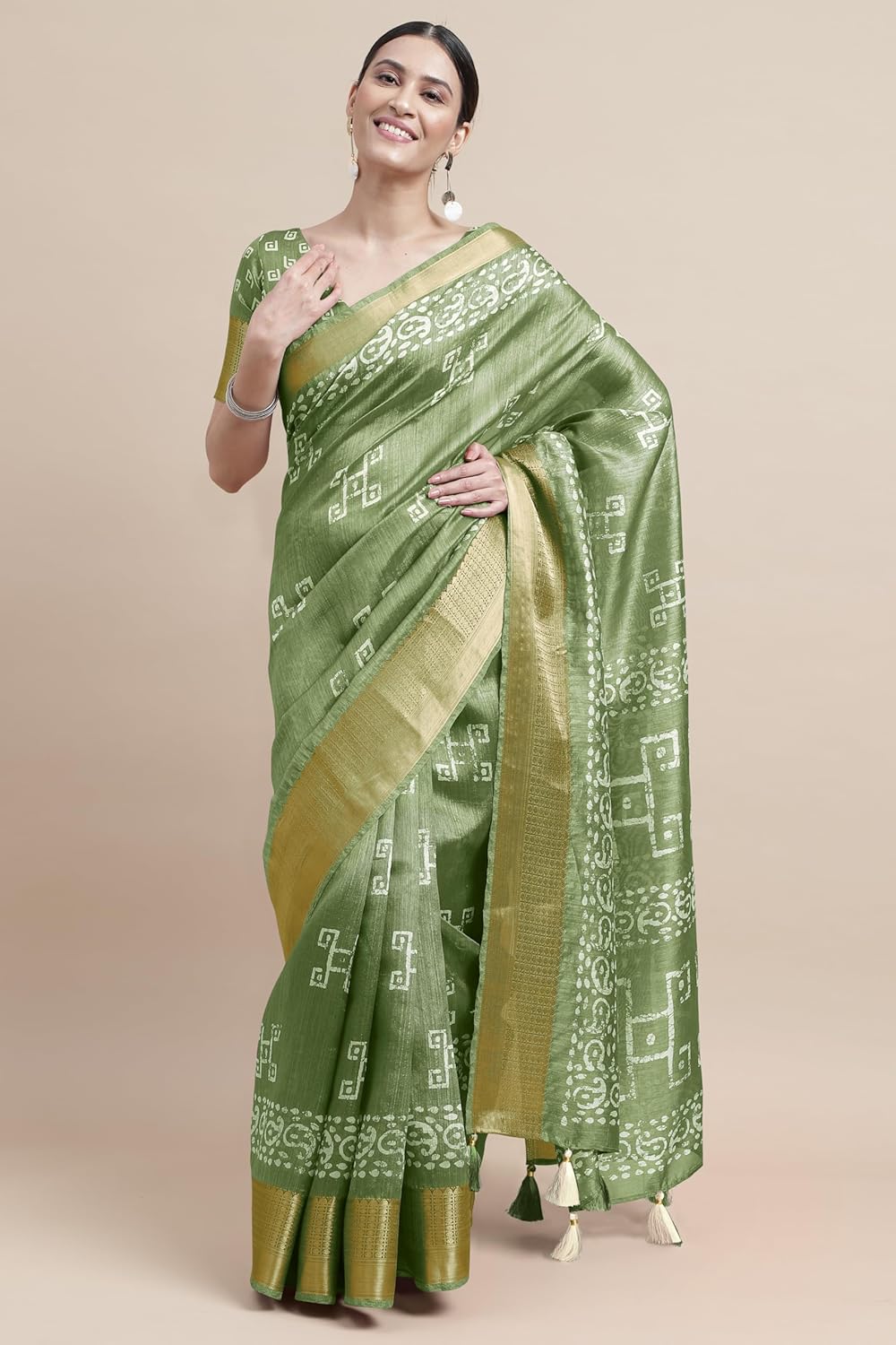 Discover the exquisite charm of the MIRCHI FASHION Women’s Cotton Silk Batik Block Printed Saree. Crafted from premium cotton silk fabric, this saree features a mix of batik block prints, accented by a golden weaving border with tassels.