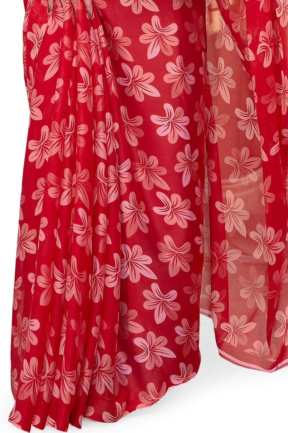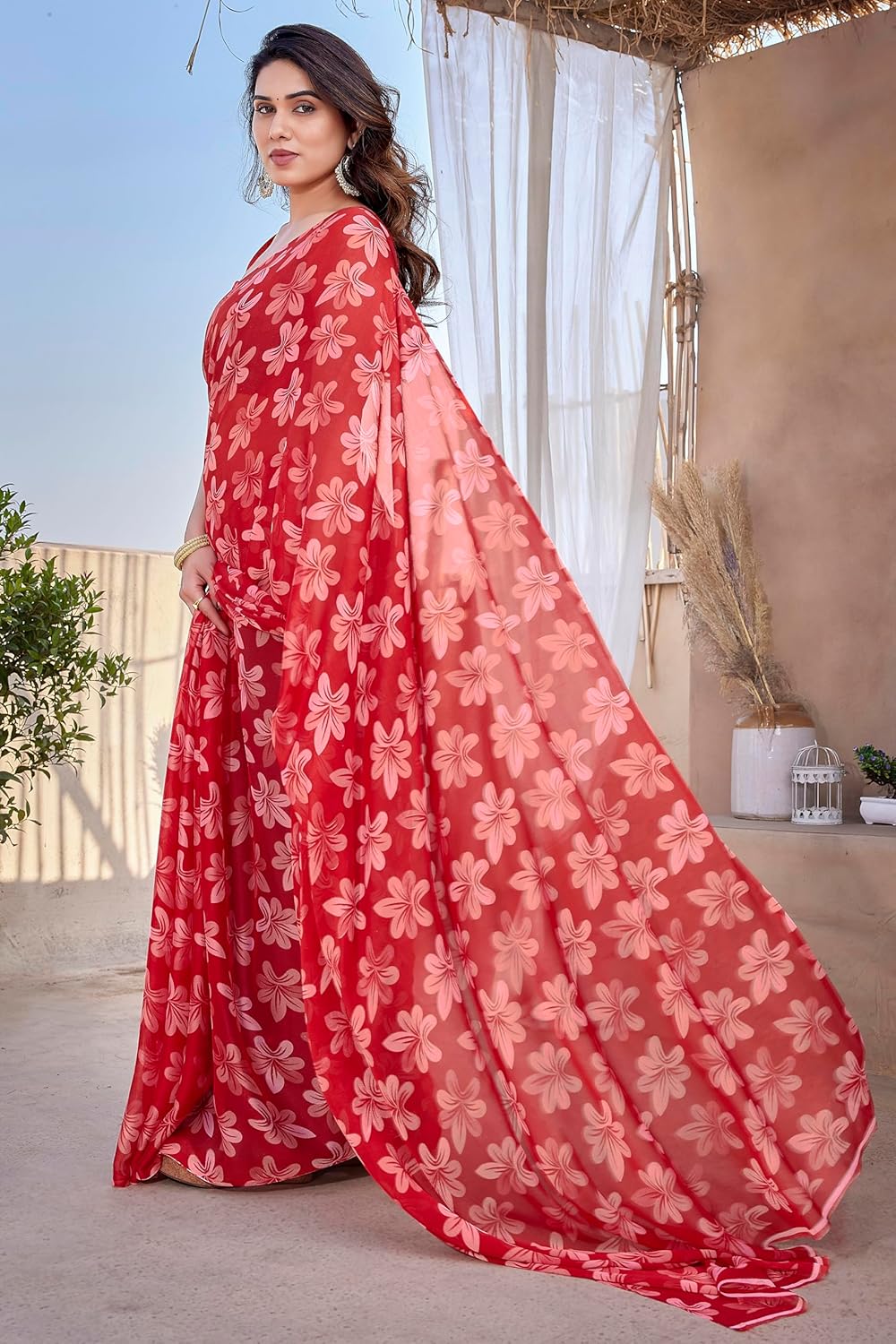 The MIRCHI FASHION Women’s Chiffon Floral Printed Saree offers a beautiful fusion of elegance and modern charm. Made from soft, lightweight chiffon fabric, this saree features an exquisite floral print in a vibrant red hue, creating a bold yet graceful look. Its easy-to-drape nature makes it perfect for everyday wear, family gatherings, or casual office events. Paired with a matching chiffon blouse, this saree is designed to be a versatile addition to your wardrobe, combining comfort and style for every occasion.