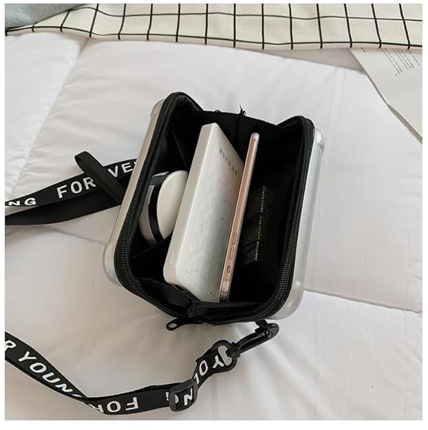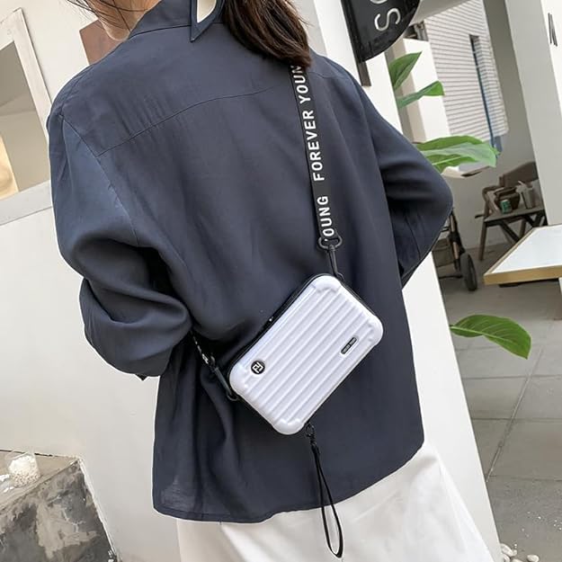 This Hard shell ABS material made sling bag has a tough and smooth glossy finish body that is waterproof and travel friendly. It comes with adjustable durable handles and good quality zipper. This cute small portable makeup organizer can be used as makeup bag, travel case, cosmetic bags, makeup organizer, makeup clutch, accessories pouch, travel makeup, toiletry bag, purse, pouch, coin purse, clutch pouch, change holder, wallet. It is one of the travel essentials. Meanwhile, it can be the most fashionable and practical gift, it is suitable for people you love as Valentines Day, Christmas, New Year gifts, birthday gifts, etc. Size: 18 X 11 X 6 cm