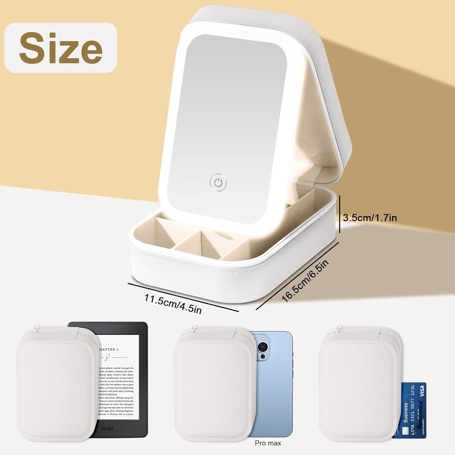 【Compact Travel-Friendly Makeup Case】Measuring just 6.5 x 4.5 x 2.4 inches, this makeup case features a built-in LED mirror, combining compact design with exceptional portability. Equipped with a long-lasting battery that provides a week’s use on a single charge, it ensures you can maintain perfect makeup anywhere you go. Ideal for travelers, it’s like having a small, portable dressing table at your fingertips.