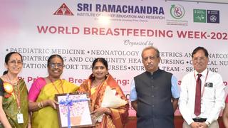 S. Srinivasan, expert advisor to the National Health Mission, Tamil Nadu, said only 42% of Indian mothers breastfeed and cited a Spanish study showing that rate of breastfeeding increased with peer, professional, and family support. Uma Sekar, the institute’s Vice-Chancellor, emphasised breastfeeding’s impact on bonding and cancer prevention. K. Balaji Singh, dean, highlighted lactation support from labour rooms and a state-of-the-art human milk bank.
