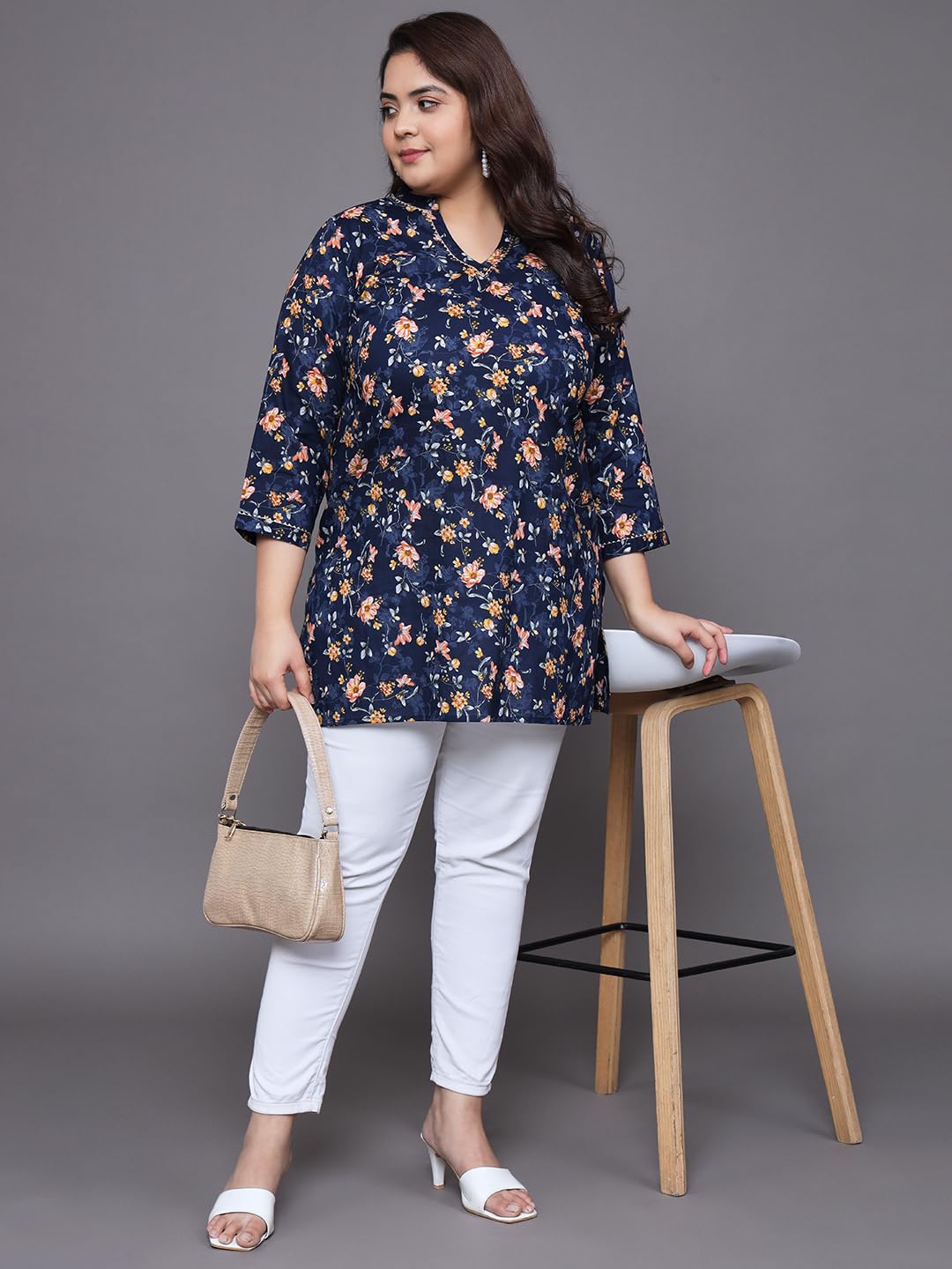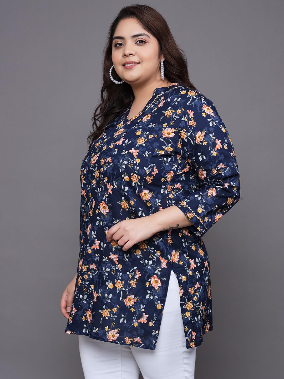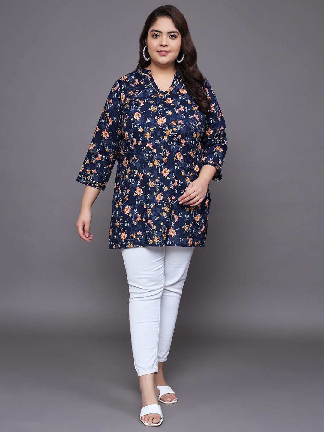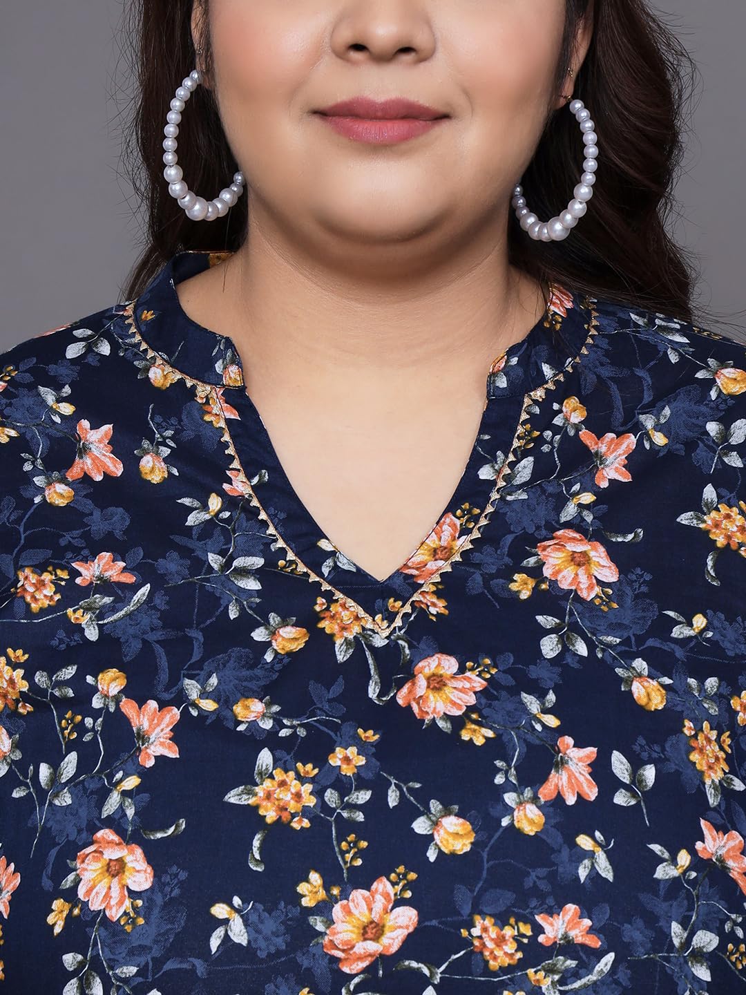 The Tissu Women’s Plus Size Ethnic Motifs Printed Pure Cotton Kurti is a stylish and comfortable choice for plus-size women, blending traditional motifs with contemporary design. Crafted from pure cotton, the fabric ensures breathability and a soft, comfortable feel against the skin. This kurti features 3/4 sleeves with a length of 18 inches, providing a balanced and versatile sleeve style. The kurta itself has a length of 33 inches, offering a modest and flattering fit. The inclusion of side slits enhances comfort and adds a touch of movement and style to the garment. The v-neck design adds a touch of sophistication, and the ethnic motifs print gives the kurti a traditional and cultural aesthetic. This combination of features makes the kurti suitable for various occasions, whether casual or semi-formal. Pair this plus-size kurti with leggings, pants, or a skirt to create a stylish and confident look that seamlessly blends ethnic charm with contemporary fashion.