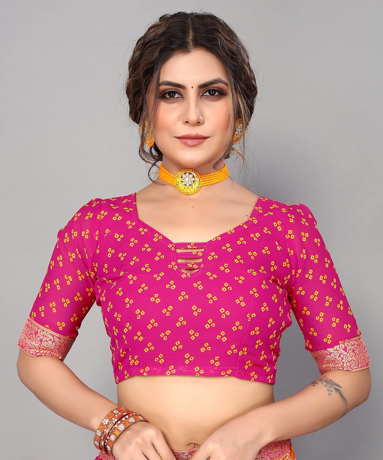 Generic Name : Yashika Women’s Georgette Printed Saree With Blouse Piece (VERA PINK)
