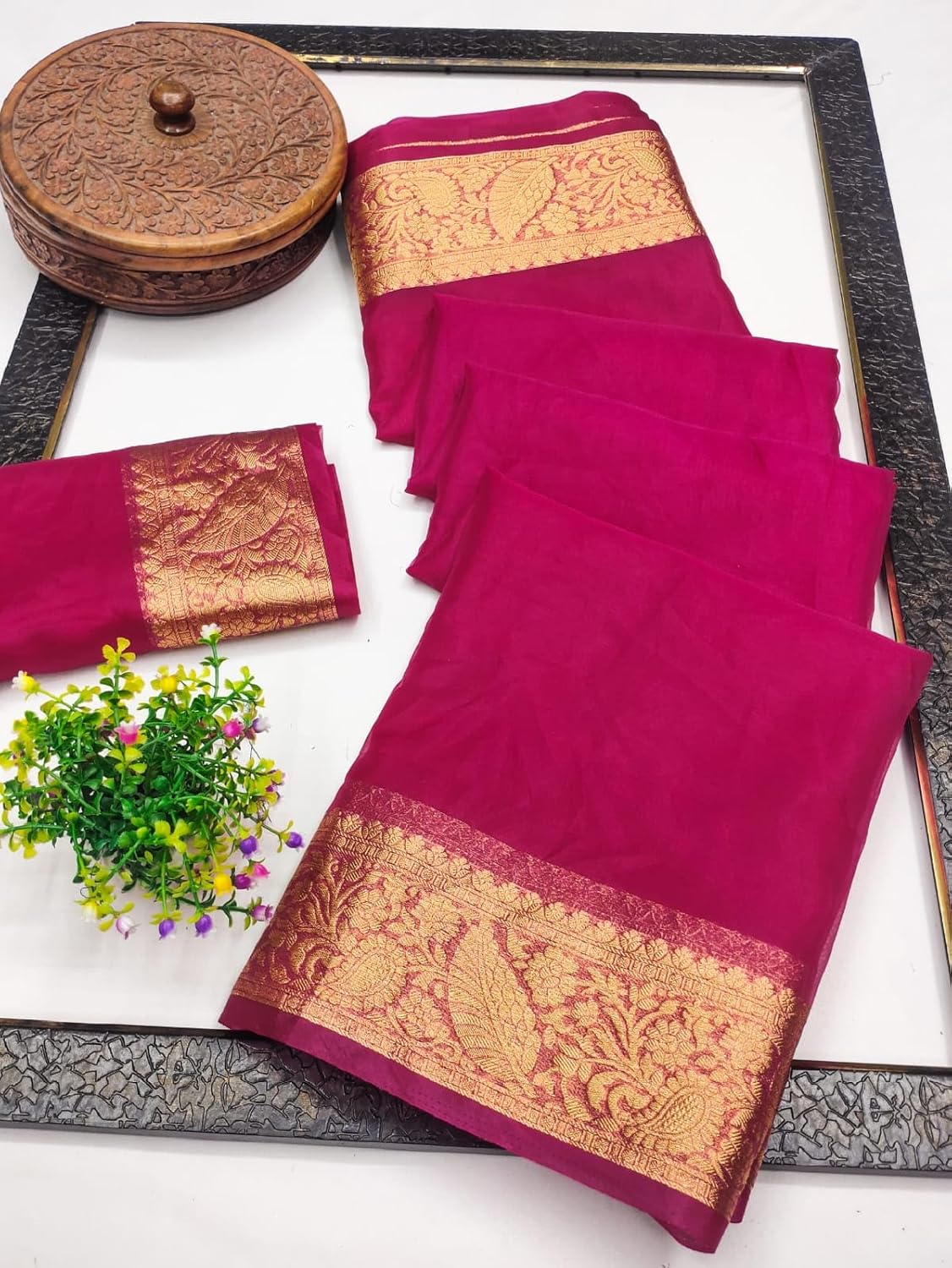Generic Name : Organza Saree with Floral Woven Border and Unstitched Blouse Material